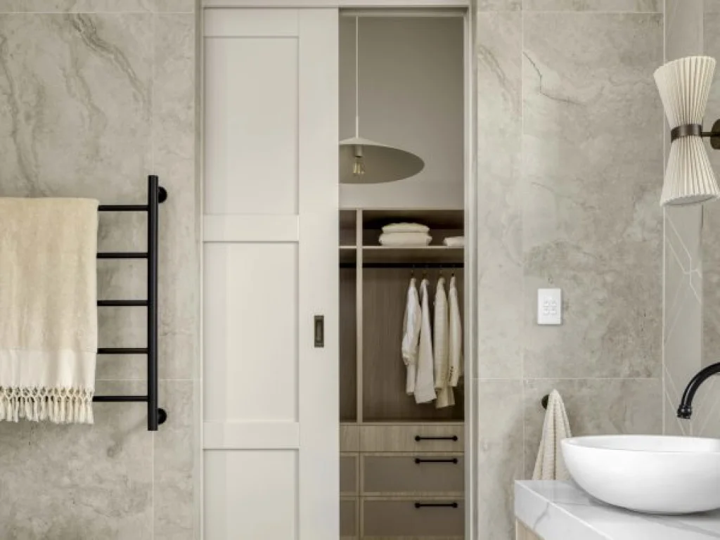 Utilise the space normally taken up by a hinged door allowing the door to slide into a pocket inside your wall. Available in timber and timber/steel units with sound advise on the slide units that will suit the door selected.