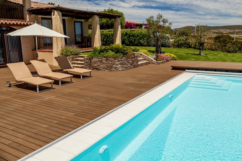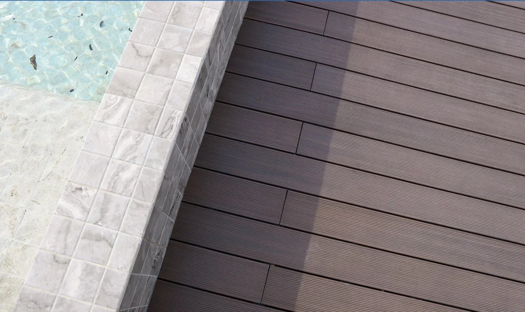 - Terrace range: features elegant, multi-chromatic finishes such as Blackbutt, Antique, Teak, Ipe, and Silver Grey. Each board is double-sided, offering versatility in design.
