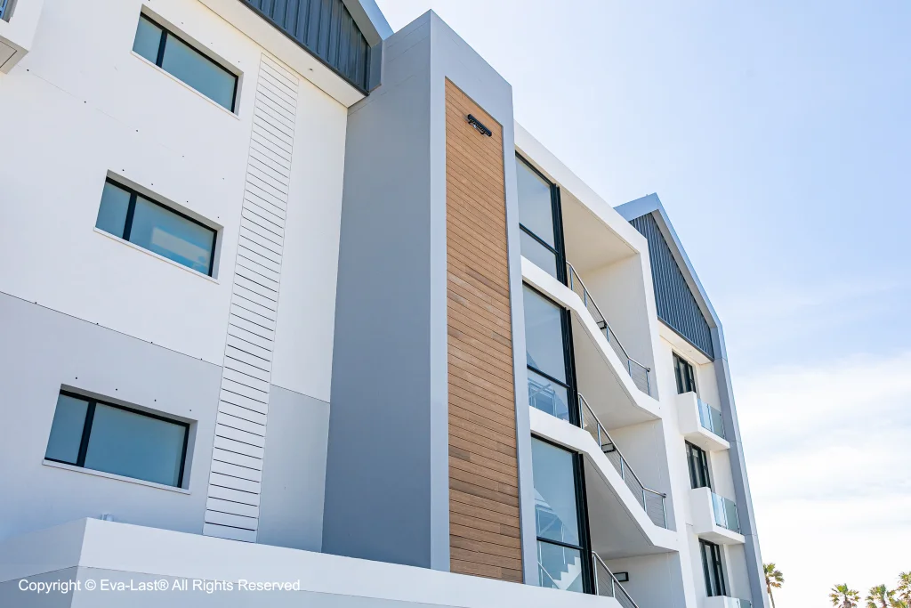 The Eva-Last VistaClad composite cladding system combining an engineered composite board with a dedicated concealed fastening system.